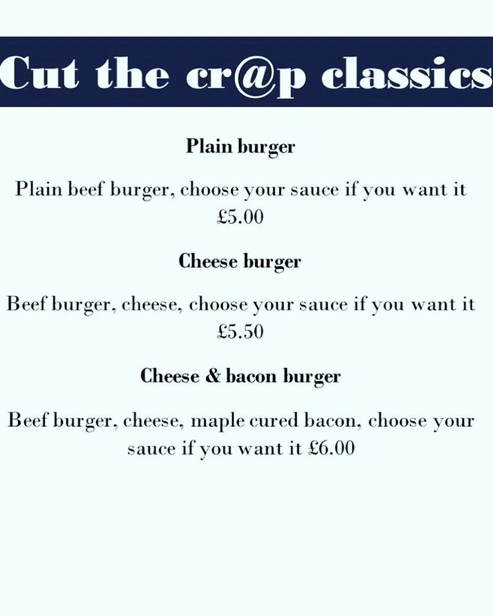 Cut The Cr@P Classics offer traditional burger choices such as plain burger, cheese burger, and cheese & bacon burger, catering to those seeking straightforward, familiar burger options.